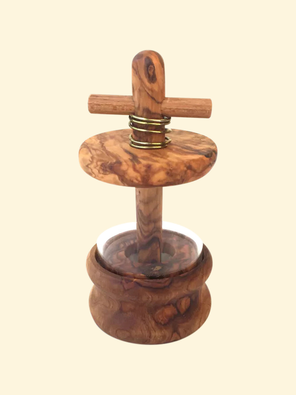 Kvarnen är gjord av plast och cylindern är gjord av akrylglas. För att fylla kvarnen trycks fjädern ner, stiftet dras ut åt sidan och locket lyfts av. Kvarnen är inte lämplig för peppar. Varje föremål är unikt och skiljer sig inte bara i form/storlek, utan även i ådring/färg. Rengör den unika biten med vatten och vid behov lite diskmedel. Gnid in lite vegetabilisk olja med jämna mellanrum. Ej lämplig för diskmaskiner. Ungefärliga storlekLängd: 6cmBredd: 6cmTjocklek: 12cm
