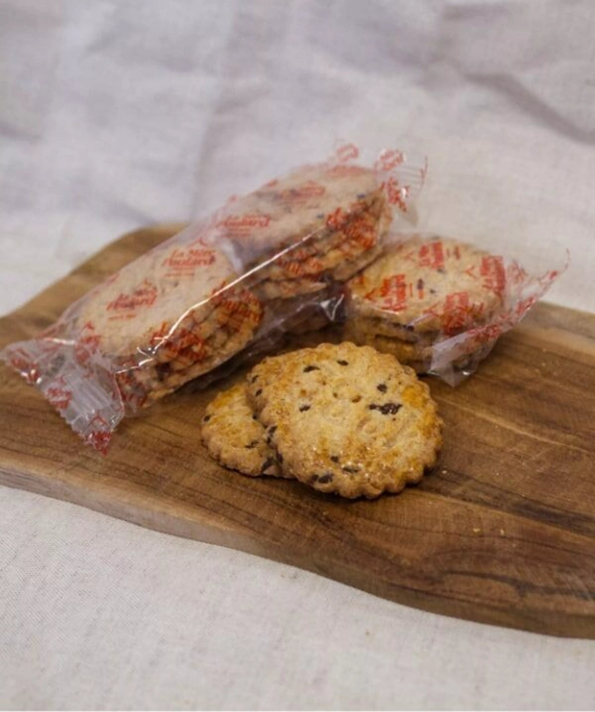 Mördegskakan och dess förföriska chokladbitar kommer att glädja dina smaklökar. Denna låda är perfekt för att glädja dina nära och kära. Denna låda innehåller 4 påsar med 8 kex.