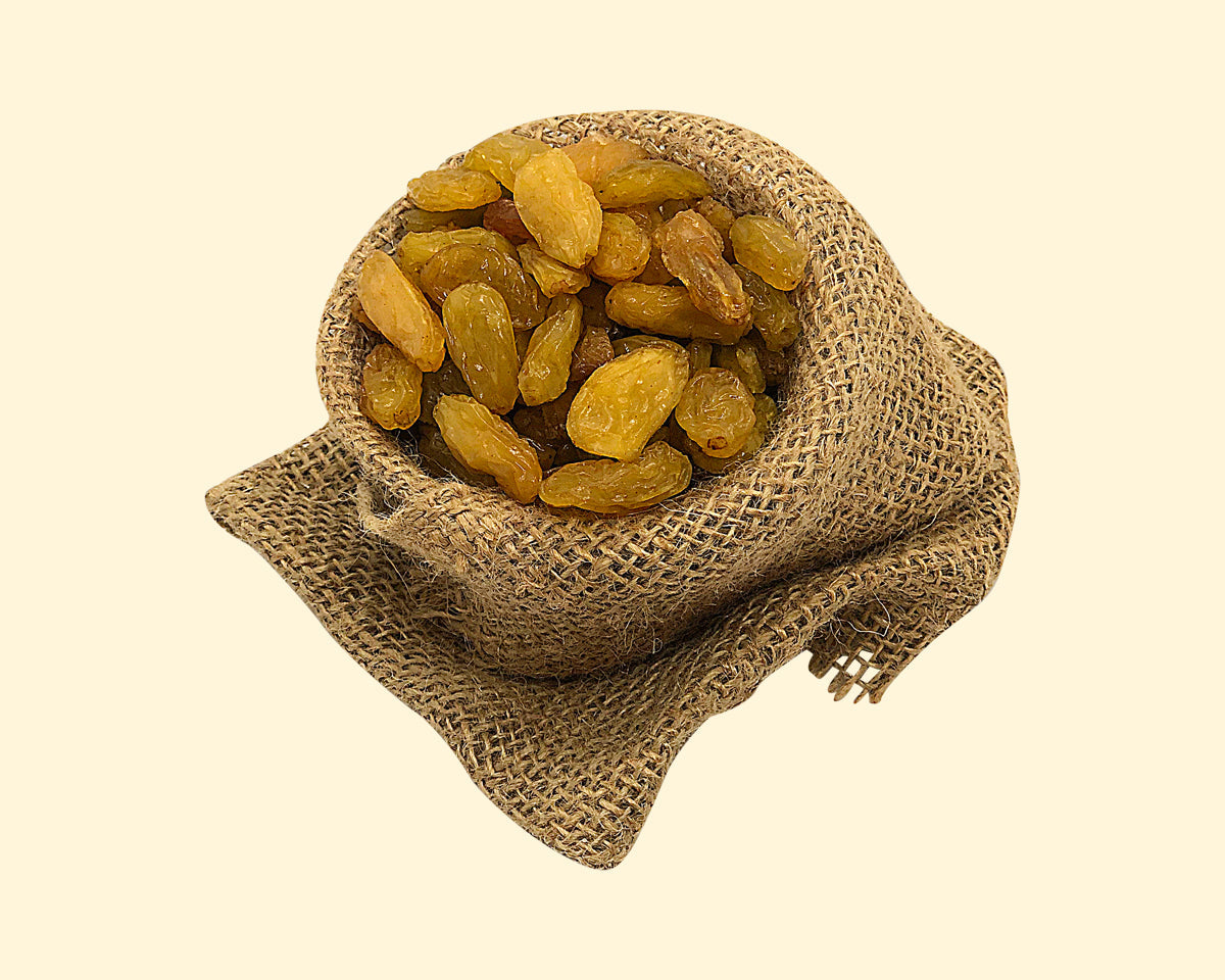 Dessa Golden Jumbo-russin är fantastiska med sin syrliga och fruktiga karaktär. De är enorma, nästan lika stora som en druva, och är perfekta som ett nyttigt snacks för både stora som små.