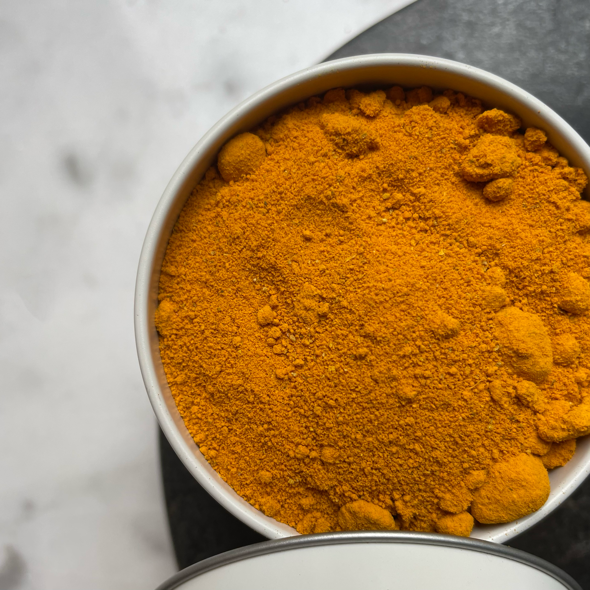 Rhizomerna skalas endast grovt – något som sällan görs – för att behålla kärnan, den del som är rikast på curcumin och aromatiska essenser. Därefter får de torka långsamt i solen innan de mals till ett pulver med en särskilt intensiv och väldoftande karaktär.