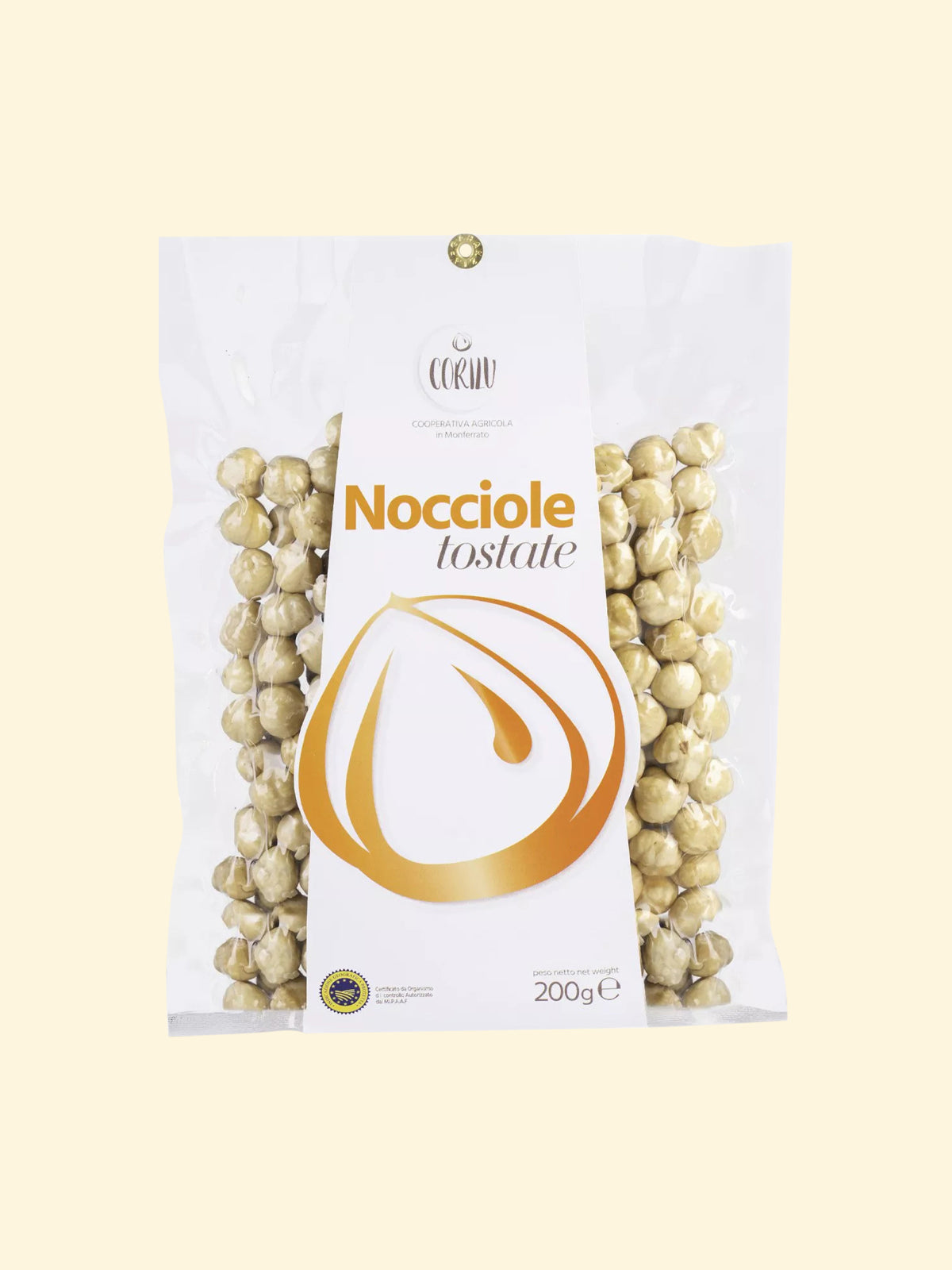 Rostade och noggrant utvalda Piemonte IGP hasselnötter i vakuumförpackning.