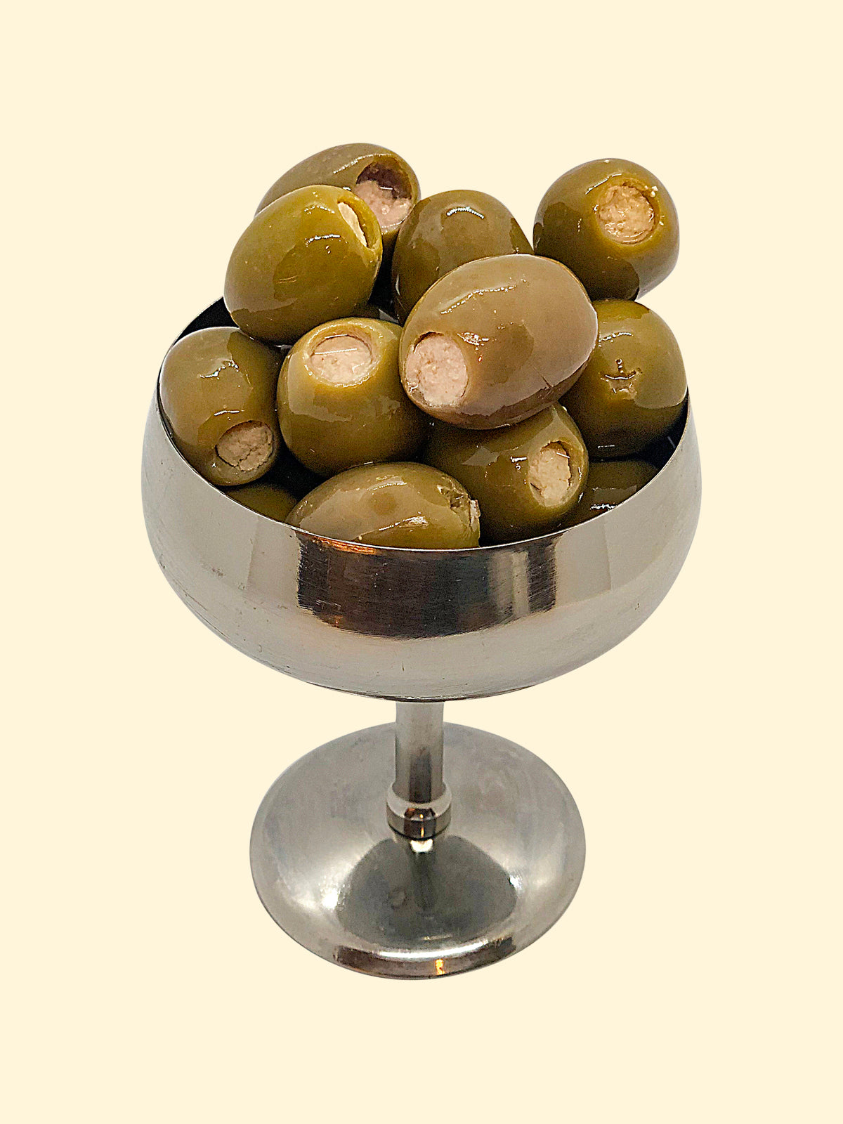 En härlig kombination av fetaost och oliver. Fylls med krämig fetaost för att täppa till hålet för kärnan.