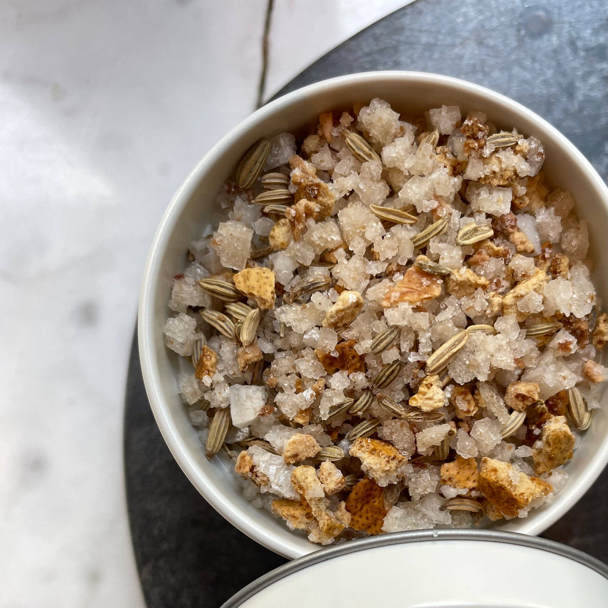 Noirmoutiersalt blandat med fänkålsfrön och apelsin