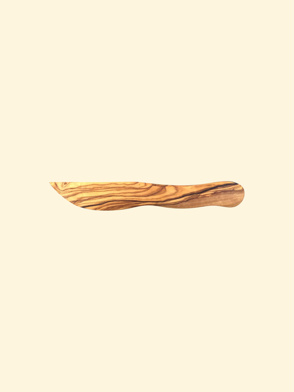 Smörkniven är gjord av olivträ och är handgjord. Den unika rödbruna ådring med ett oregelbundet fiberflöde på en slät yta gör olivträkniven till något extraordinärt. Den snygga träkniven är mångsidig och frammanar en varm medelhavsatmosfär på varje bord. Den ädla kniven är perfekt för att breda smör, färskost, kvarg, sylt och mycket mer. Varje föremål är unikt och skiljer sig inte bara i form/storlek, utan även i ådring/färg. Rengör den unika biten med vatten och vid behov lite diskmedel. Gnid in lite vegetabilisk olja med jämna mellanrum. Ej lämplig för diskmaskiner. Storlek: 20cm