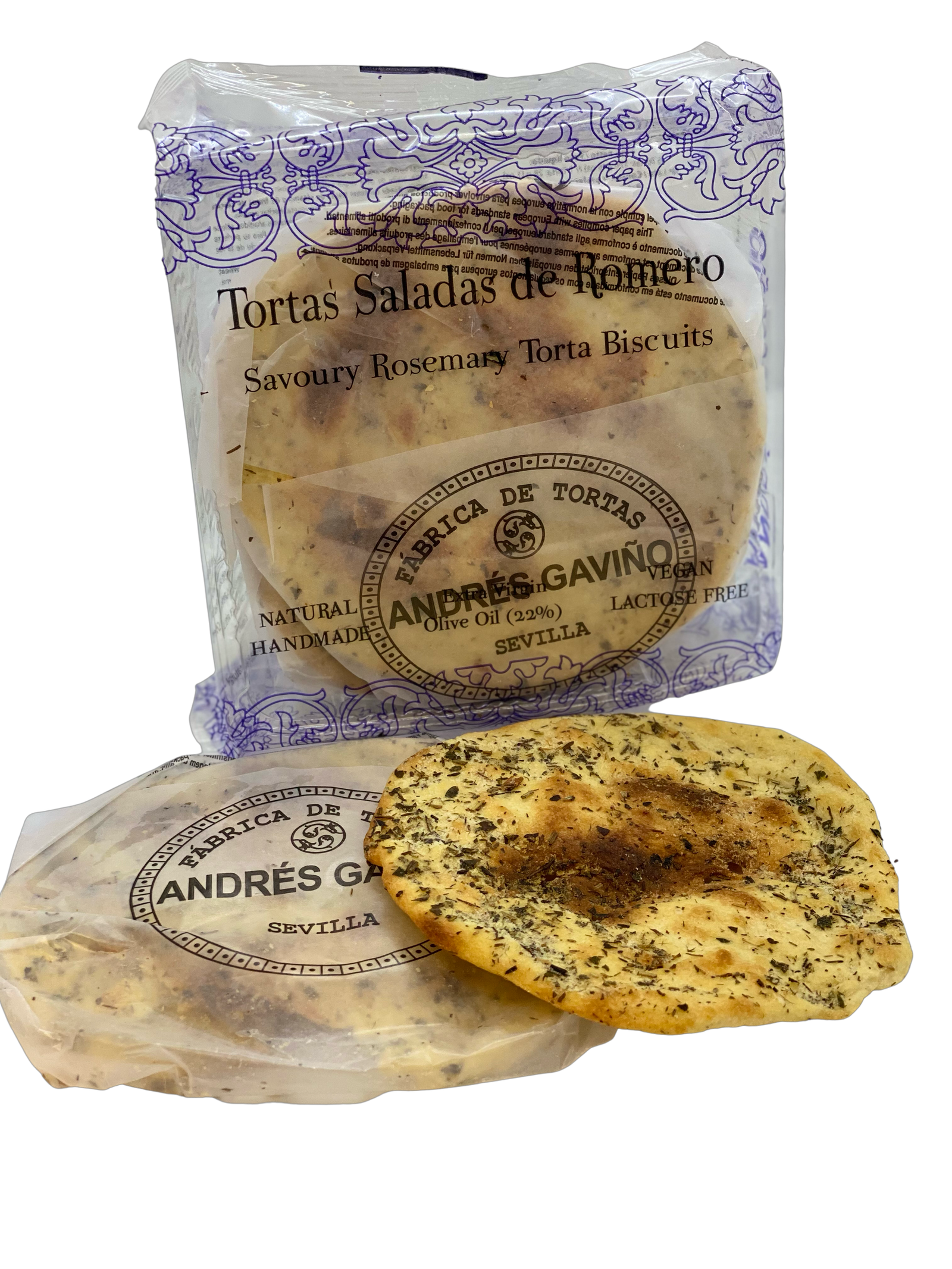 Traditionella handgjorda flatbreads, Tortas, från Sevilla. Våra tortas har rund form och en mjuk, rostad smak och är toppade med fina örter. Tortas ärtunna och har en mycket speciell spröd karaktär. Underbar till ostbrickor och soppa eller att äta som snacks.