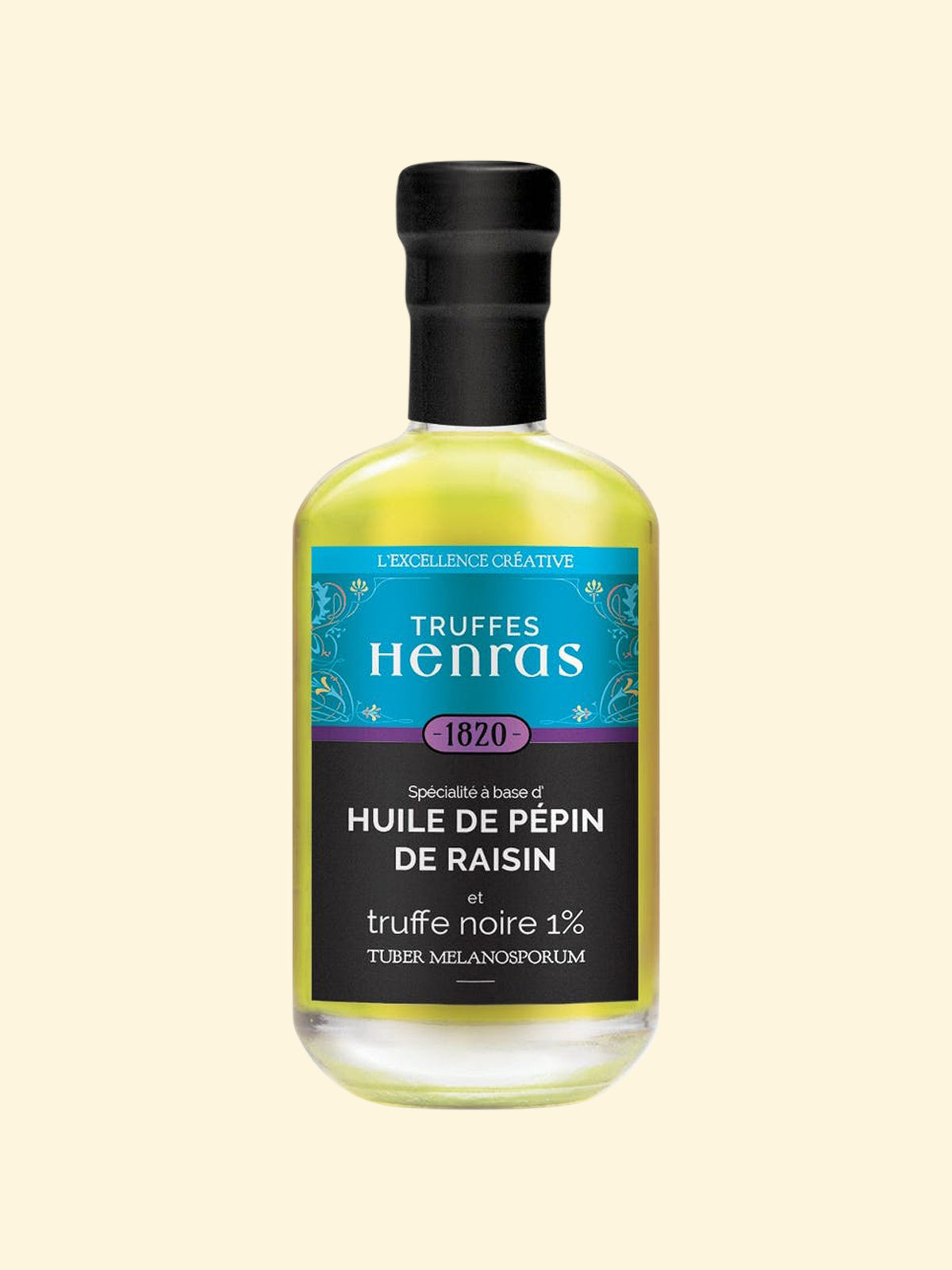 Maison Truffes Henras grundades 1820 och är det äldsta tryffelhandelshuset i världen. Rensade, sorterade och utvalda för hand förstoras tryfflarna av sina experter. Färsk eller konserverad, för att konsumera dem under hela året, är Maison Henras tryffel avsedd för professionella restauranger, men också för gourmeter som älskar svarta diamanter eller enkla neofyter på jakt efter kulinariska skapelser!Olivolja och vit tryffel gifter sig med den fruktiga och aromatiska smaken av olivolja med de smakrika tonerna av vit tryffel.