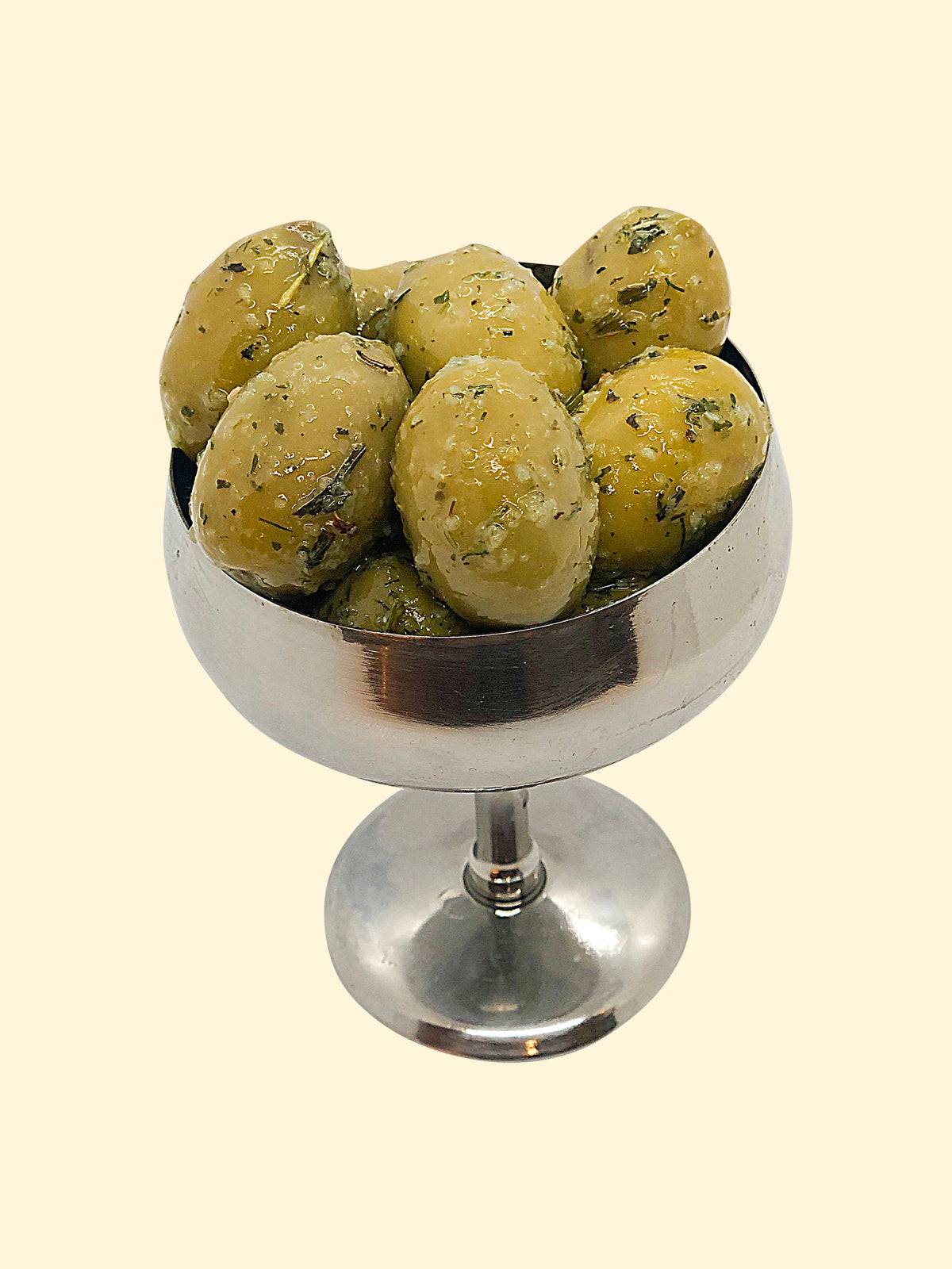 Våra underbara egenmarinerade oliver enligt vårt familjerecept.